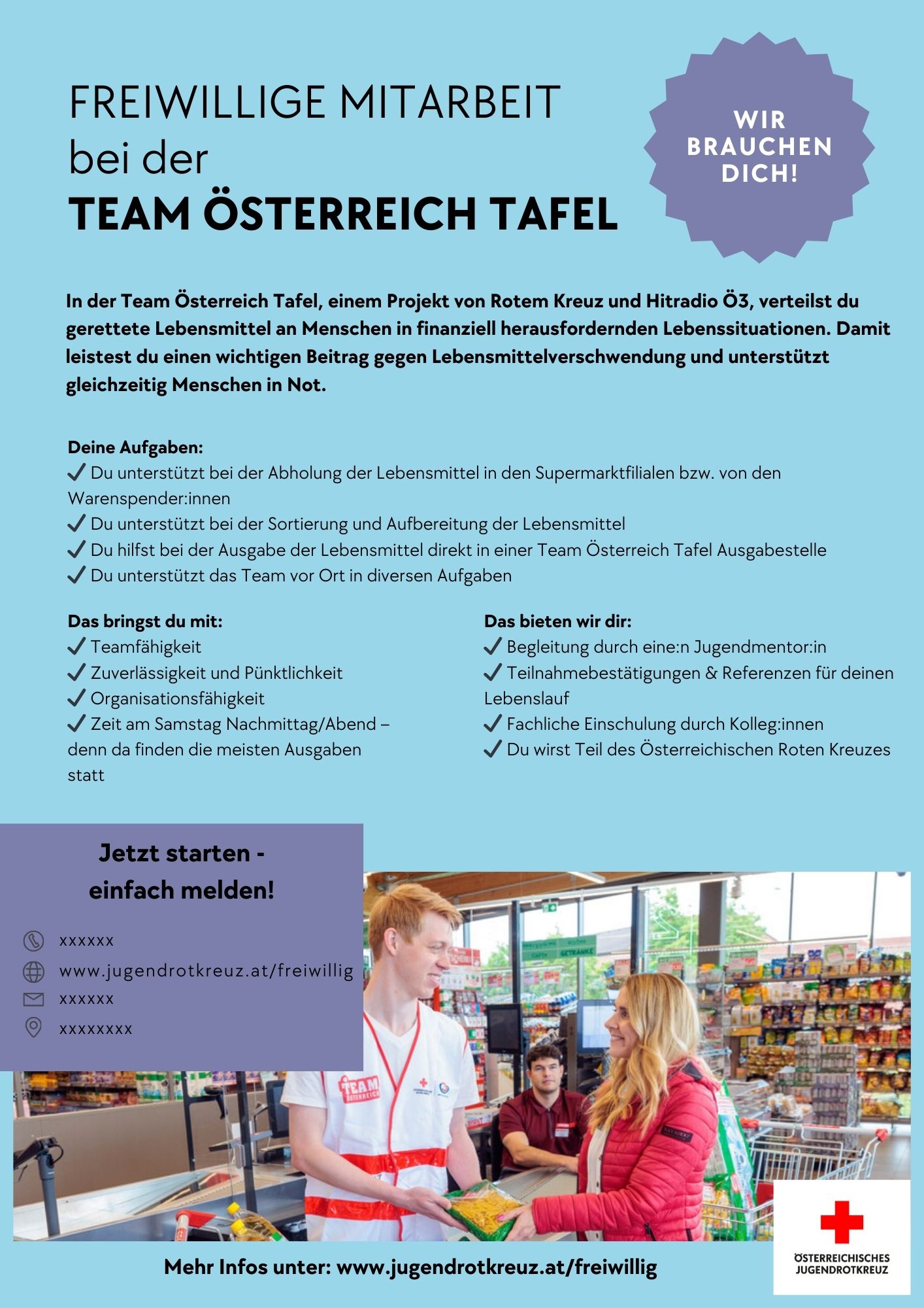 Verteile mit Rotem Kreuz und Hitradio Ö3 gerettete Lebensmittel und unterstütze Menschen, die Hilfe brauchen. Gleichzeitig hilfst du, Lebensmittelverschwendung zu stoppen – mit deinem Einsatz machst du was richtig Gutes!