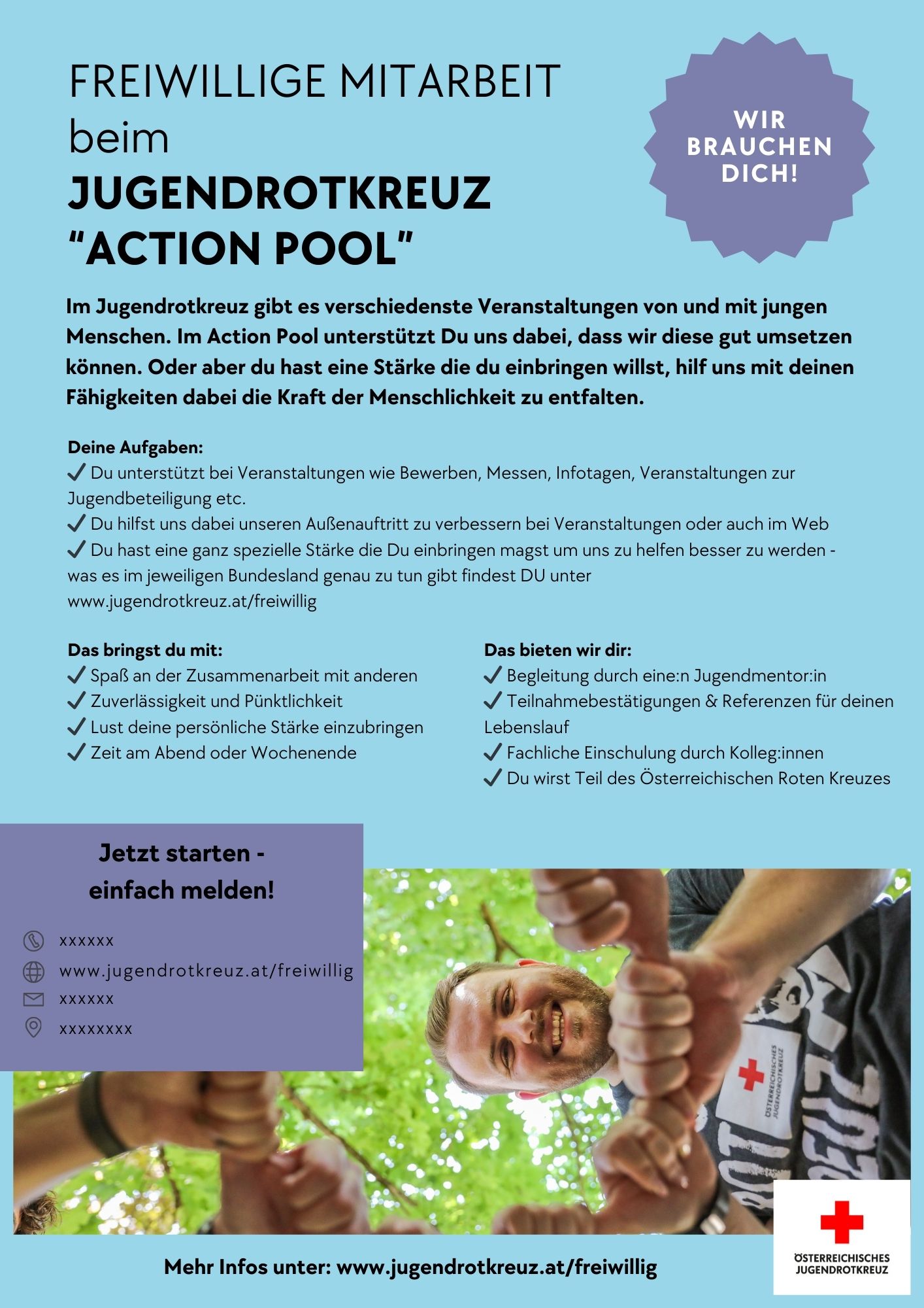 Im Jugendrotkreuz gibt es viele Veranstaltungen von und für junge Menschen. Im Action Pool hilfst du, dass alles reibungslos läuft – oder du nutzt deine Stärken, um gemeinsam die Kraft der Menschlichkeit zu zeigen.