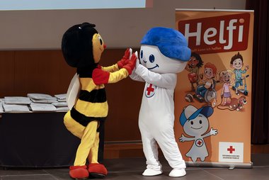 3. und 4. Klassen beweisen ihr können in Erster Hilfe. In mehreren Stationen haben sie die Möglichkeit Wunden zu versorgen, Menschen zu helfen und ihren Teamgeist zu präsentieren. Je nach erreichter Punkteanzahl erreichen die Kinder das Leistungsabzeichen in Gold, Silber oder Bronze.
